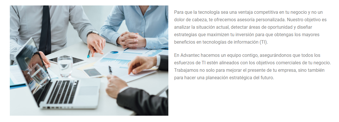 Nuestra experiencia en soluciones informáticas permiten a su empresa optimizar el flujo de trabajo y aumentar la productividad. No importa el negocio, Advantek lo cubre con soluciones compatibles con la industria y personalizadas para las necesidades específicas de su empresa